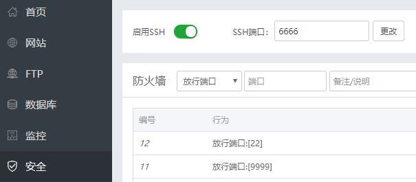 而在宝塔面板中,可以一键修改ssh端口,并且自动开放防火墙,非常的方便,所以大家一定不要使用默认的22端口